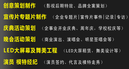 團(tuán)隊(duì) Team多年的行業(yè)淬練、豐富的制作經(jīng)驗(yàn)使我們建立起一支專業(yè)、高效、富有創(chuàng)造力的團(tuán)隊(duì)——國家級的導(dǎo)演,為全片制作指點(diǎn)乾坤;睿智的策劃撰稿,妙筆點(diǎn)亮全片靈魂;成熟的執(zhí)行導(dǎo)演,拍攝中統(tǒng)籌畫面效果;老到的攝影師,嫻熟地記錄各式場景;還有新銳的后期編導(dǎo),用靈感為作品增色;充滿熱情的剪輯師、動畫包裝師,讓畫面效果更為精彩繽紛;才華橫溢的音樂制作人,帶來渲染氣勢的合片旋律……不同的工種通力合作,眾志成城,為一個(gè)完美影視作品的誕生齊心協(xié)力。